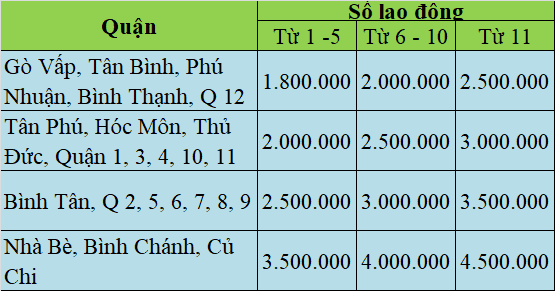 | Số lượng lao động của đơn vị | Chi phí hàng tháng |